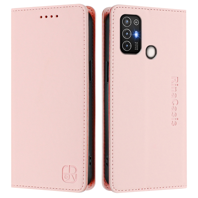 Funda de Cuero con Doble Pliegue y Succión Magnética Rfid para ZTE Blade A52 Rc01 (Rosa)