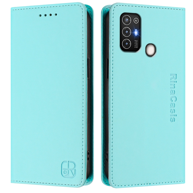 Funda de Cuero con Doble Pliegue y Succión Magnética RFID para ZTE Blade A52 Rc01 (Verde Menta)