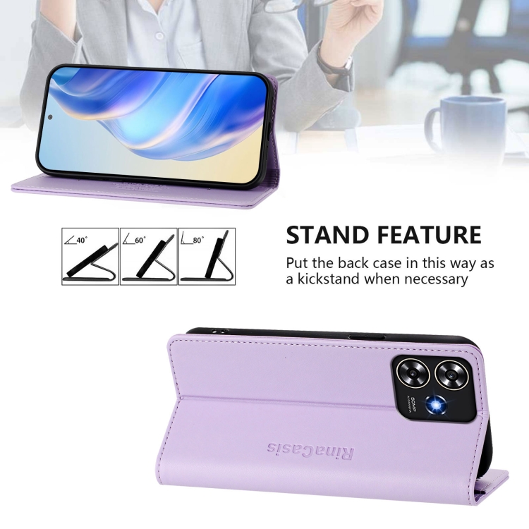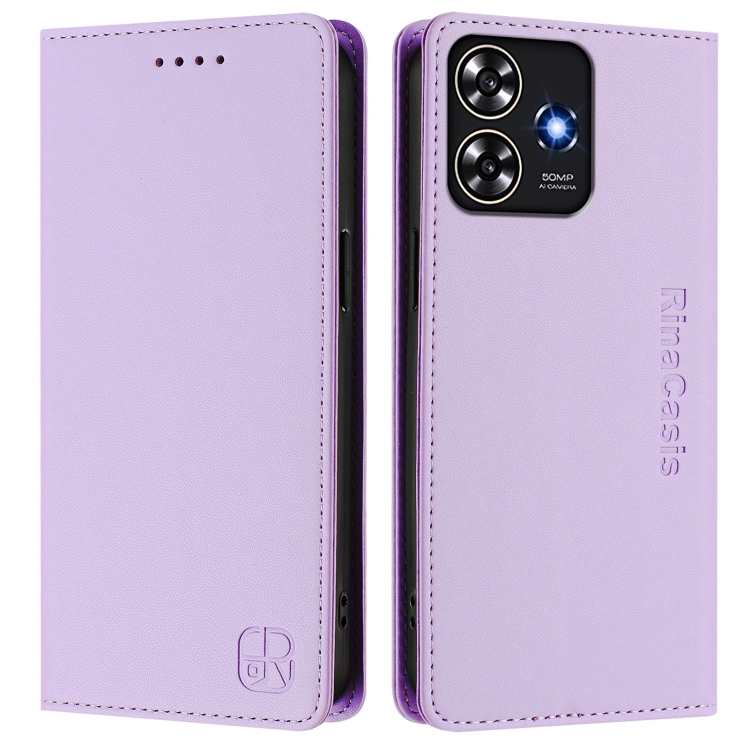 Funda de Cuero con Doble Pliegue y Succión Magnética RFID para ZTE Blade A73 4G Rc01 (Morado Claro)
