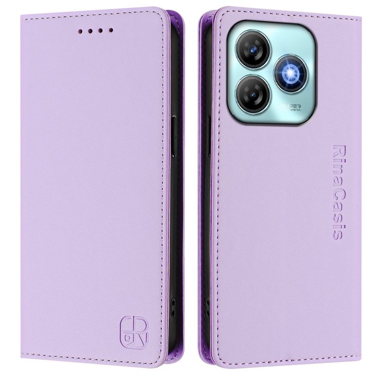 Funda de Cuero con Doble Pliegue y Succión Magnética RFID para ZTE Blade A75 4G Rc01 (Morado Claro)