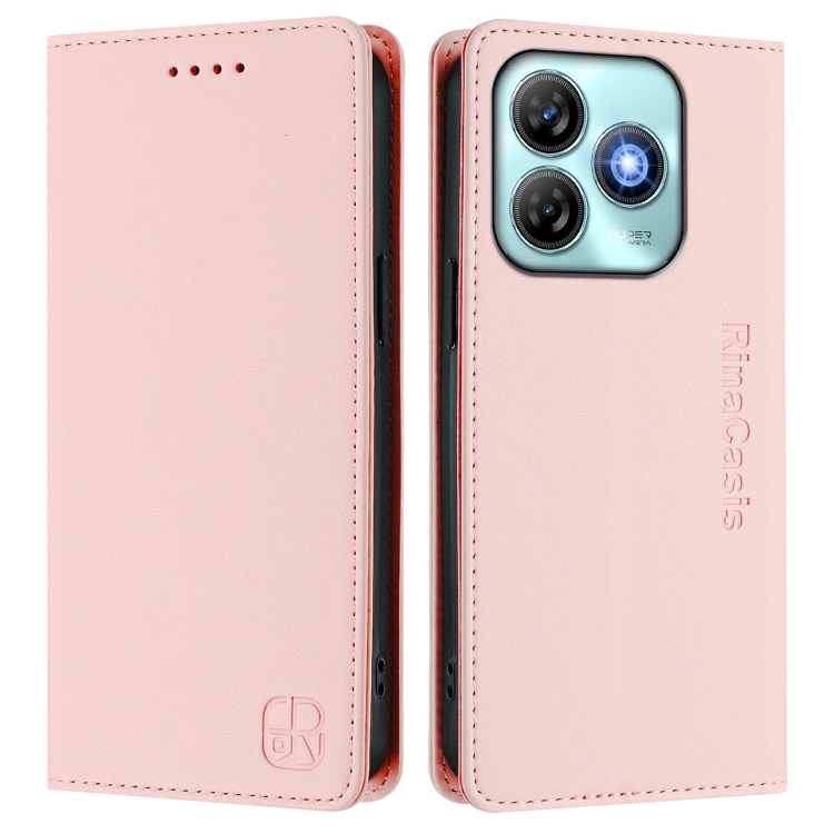 Funda de Cuero para ZTE Blade A75 4G Rc01 con Doble Pliegue y Succión Magnética Rfid (Rosa)