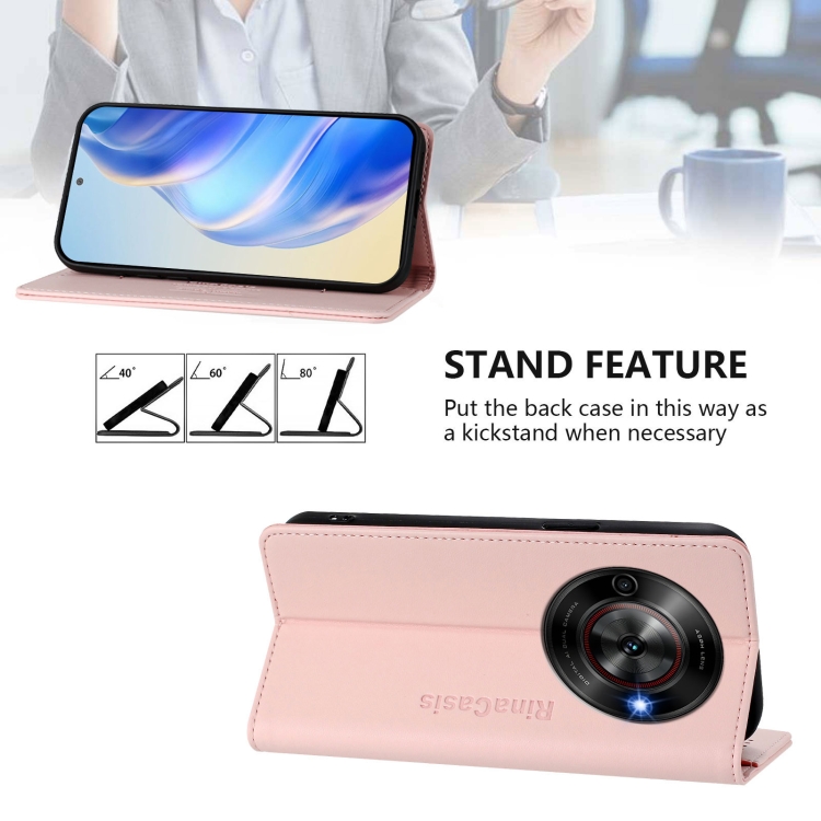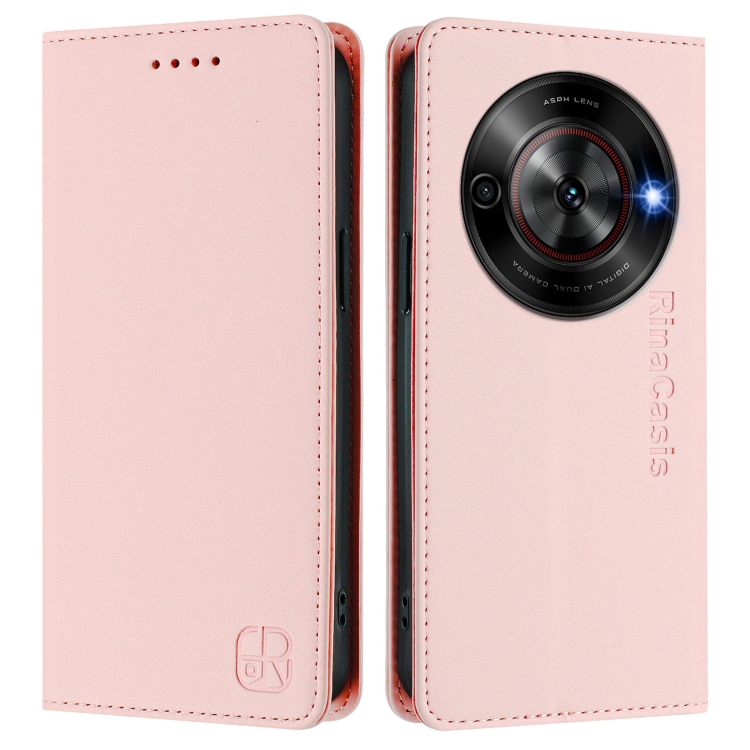 Funda de Cuero con Doble Pliegue y Succión Magnética RFID para ZTE Blade A75 5G y Nubia Focus 5G Rc01 (Rosa)