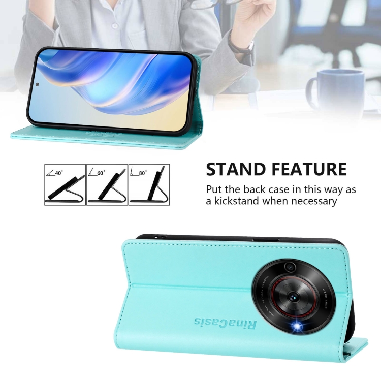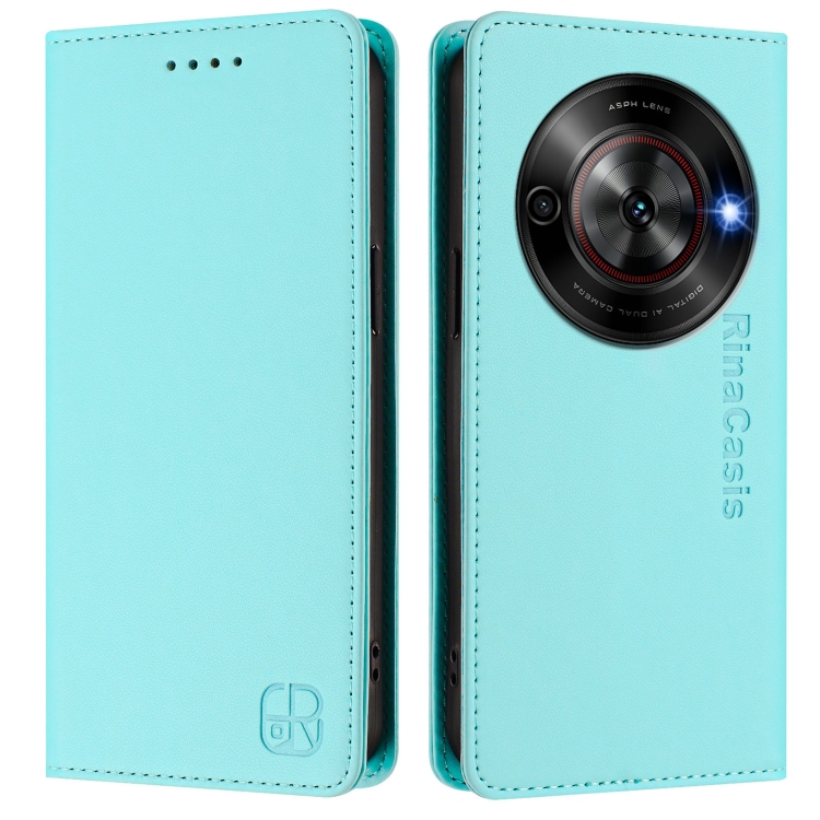 Funda de Cuero con Doble Pliegue y Succión Magnética Rfid para ZTE Blade A75 5G y Nubia Focus 5G Rc01 (Verde Menta)