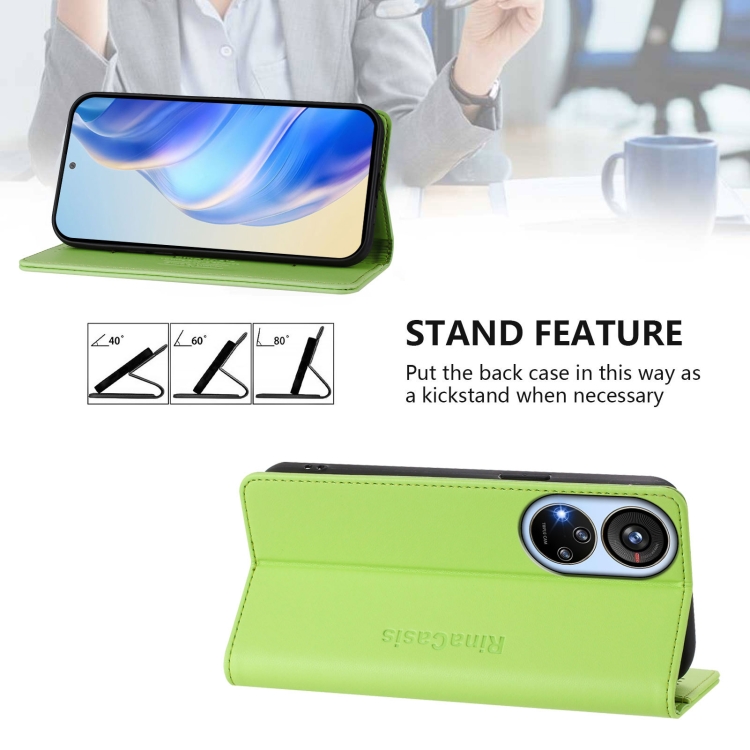 Funda de Cuero con Doble Pliegue y Succión Magnética Rfid para ZTE Blade V40S Rc01 (Verde)