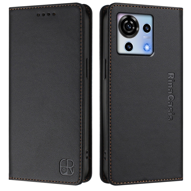 Funda de Cuero con Doble Pliegue y Succión Magnética RFID para ZTE Blade V50 Vita Rc01 (Negra)