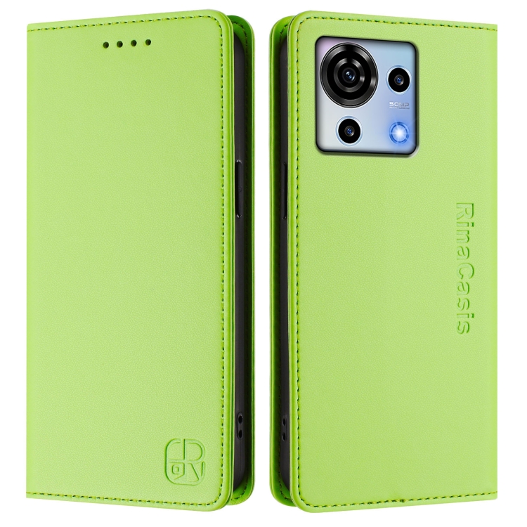 Funda de Cuero para ZTE Blade V50 Vita Rc01 con Doble Pliegue y Succión Magnética Rfid (Verde Hierba)