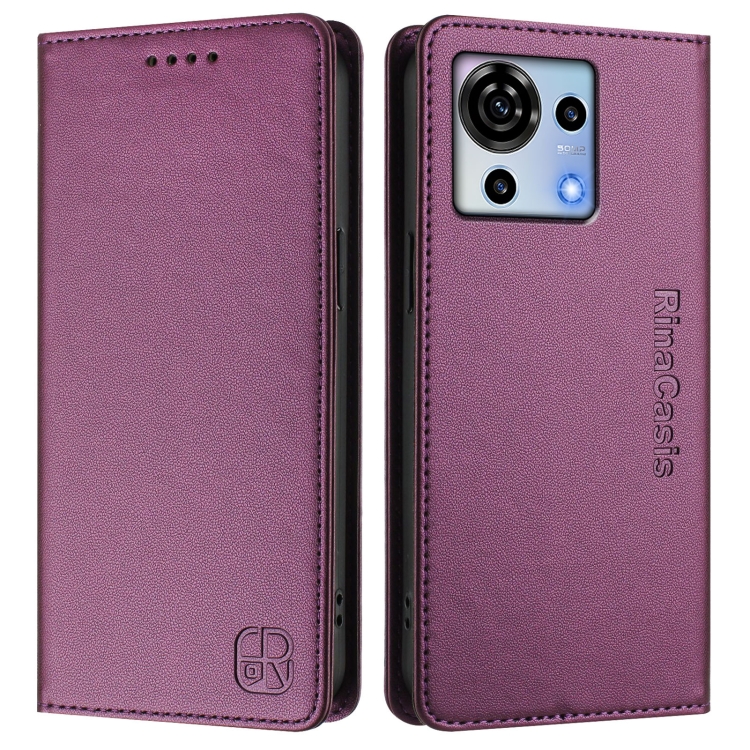 Funda de Cuero para ZTE Blade V50 Vita Rc01 con Doble Pliegue y Succión Magnética Rfid (Violeta)