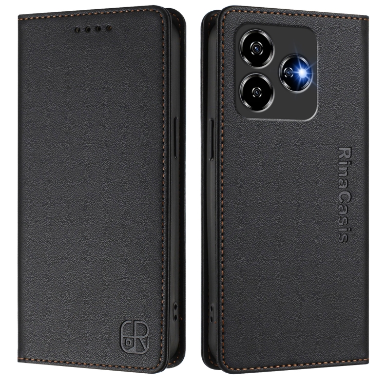 Funda de Cuero con Doble Pliegue y Succión Magnética RFID para ZTE Blade V60 Vita/V60 (Negro)