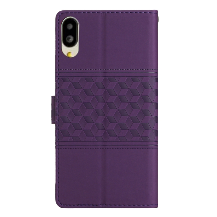 Funda de Cuero para Sharp Basio Active SHG09 con Efecto Piel en Relieve de Diamante (Morado)