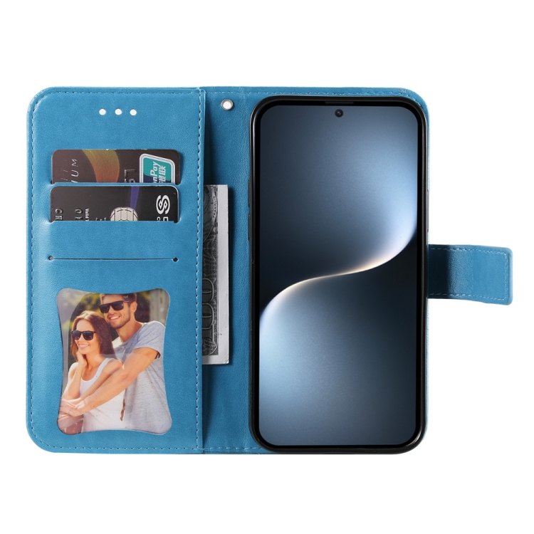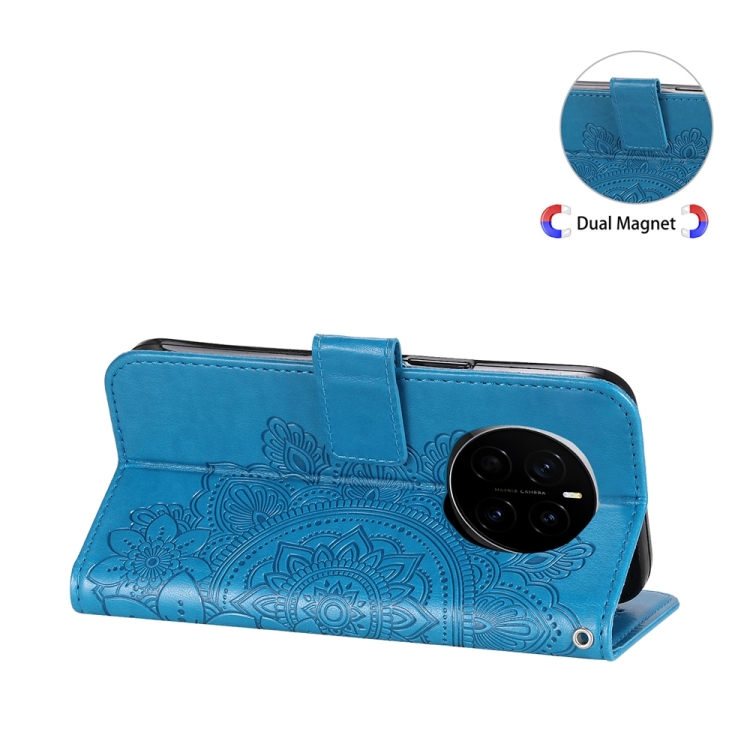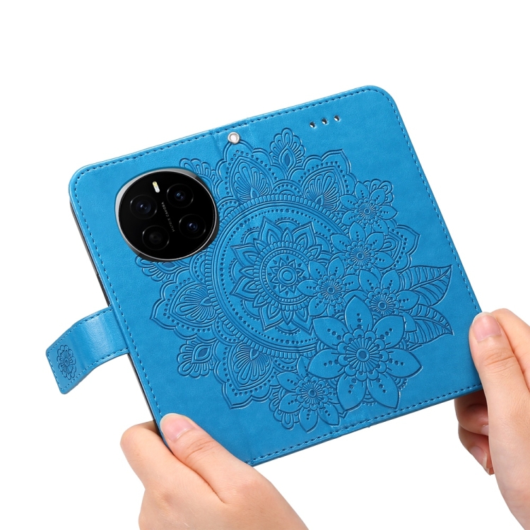 Funda de Cuero Honor Magic7 con Estampado de Flores de Siete Pétalos (Azul)