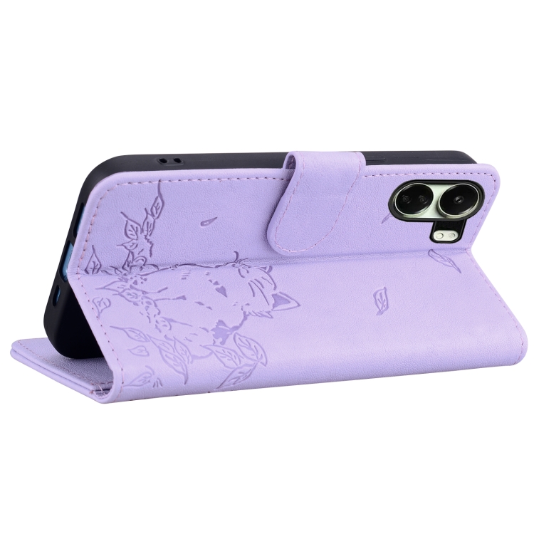 Funda de Cuero con Estampado de Gato para Redmi 13C 4G (Morado)