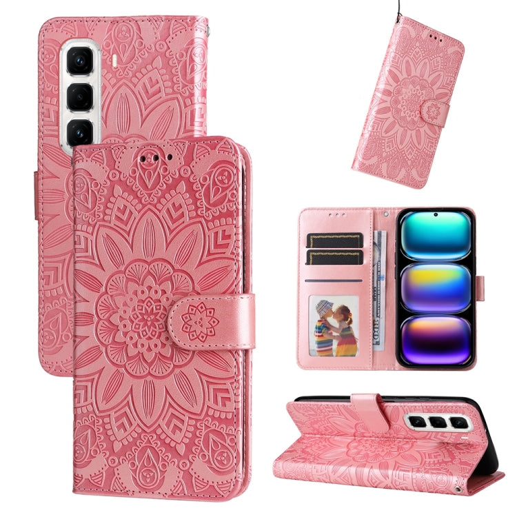 Funda de Cuero con Estampado de Girasoles en Relieve para Infinix Hot 50 Pro+ 4G (Rosa)