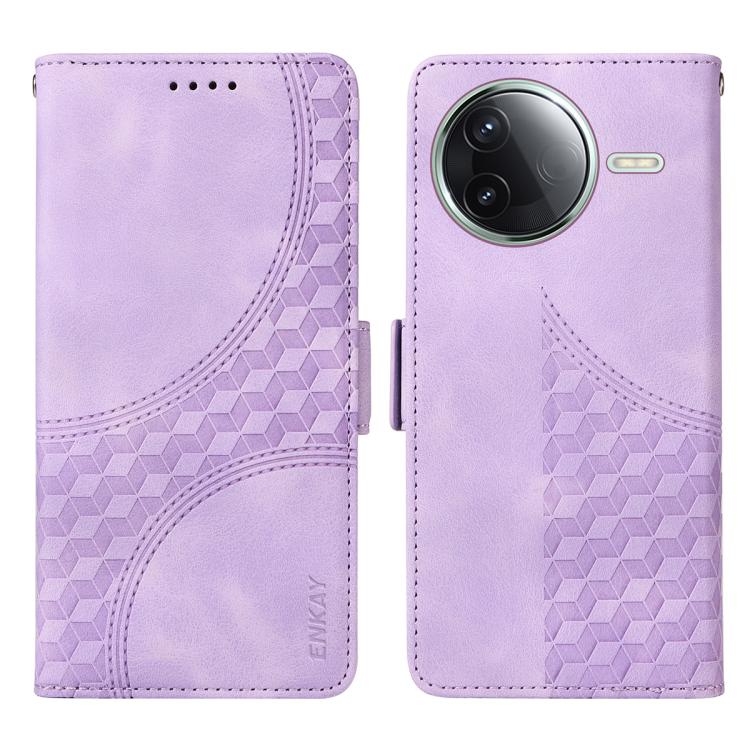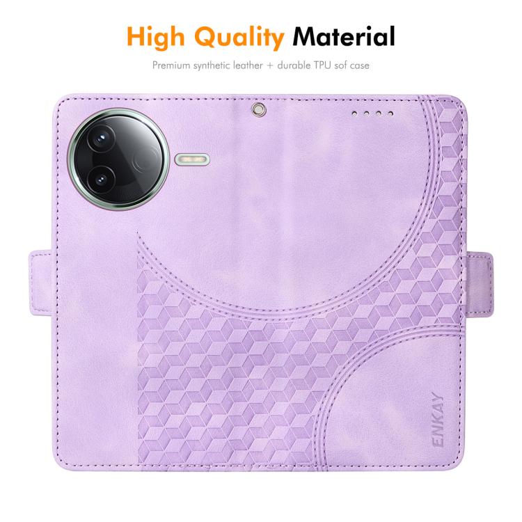 Funda de Cuero con Estampado de Rombos y Estrellas para Redmi K80 Enkay con Película para Pantalla (Morado)