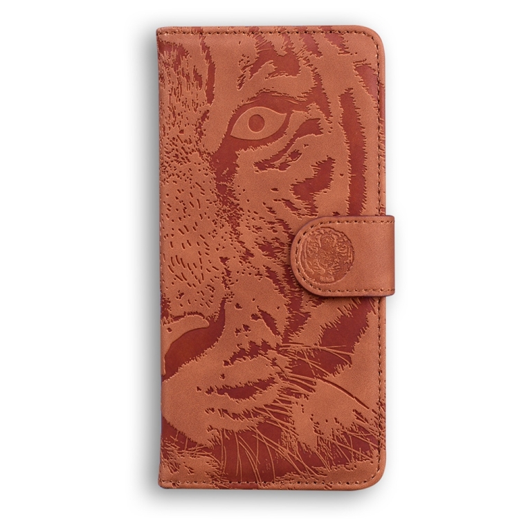 Funda de Cuero con Estampado de Tigre para Motorola Moto G75 5G (Marrón)