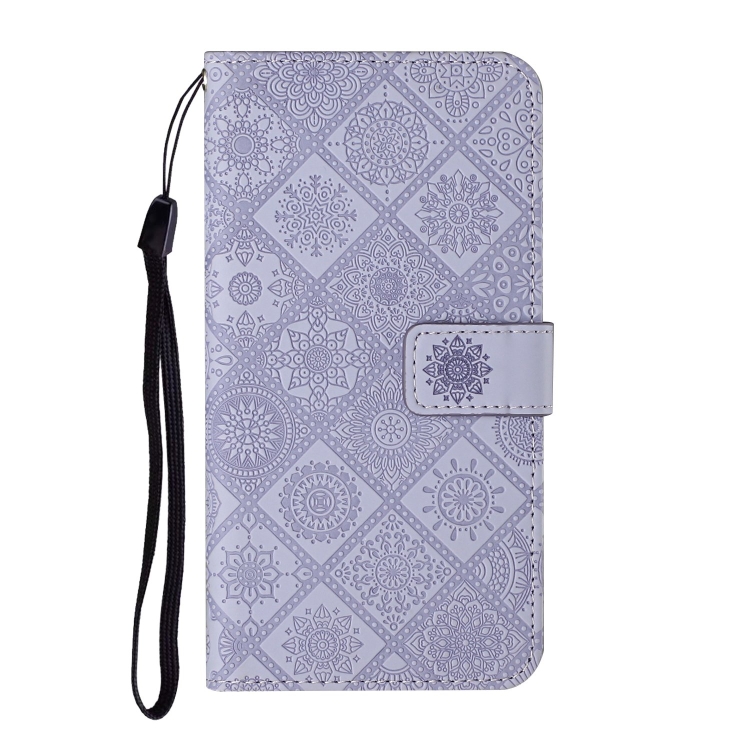 Funda de Cuero iPhone 16 Pro Max Estampado En Relieve Estilo Étnico (Morado)