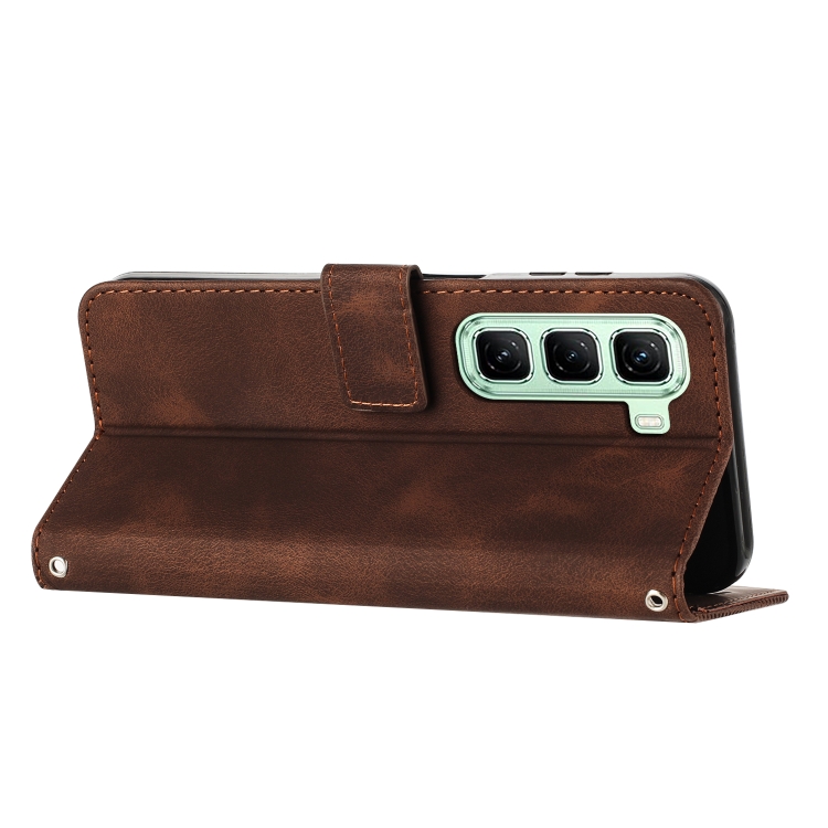 Funda de Cuero Triangular para Teléfono Infinix Hot 50 5G Dream (Marrón)