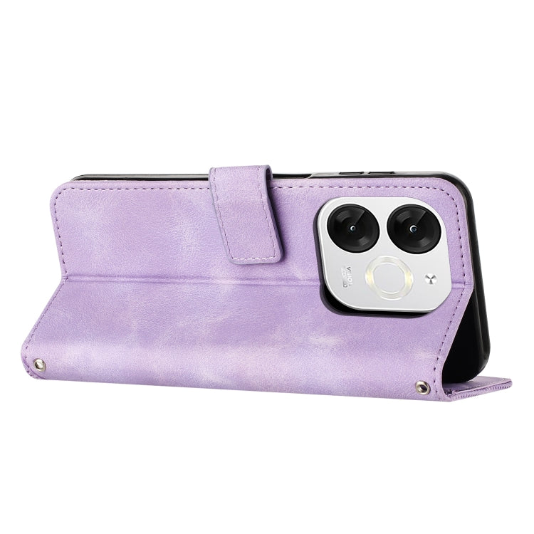 Funda de Cuero Triangular para Teléfono Itel A80 Dream con Cordón Largo (Morado)
