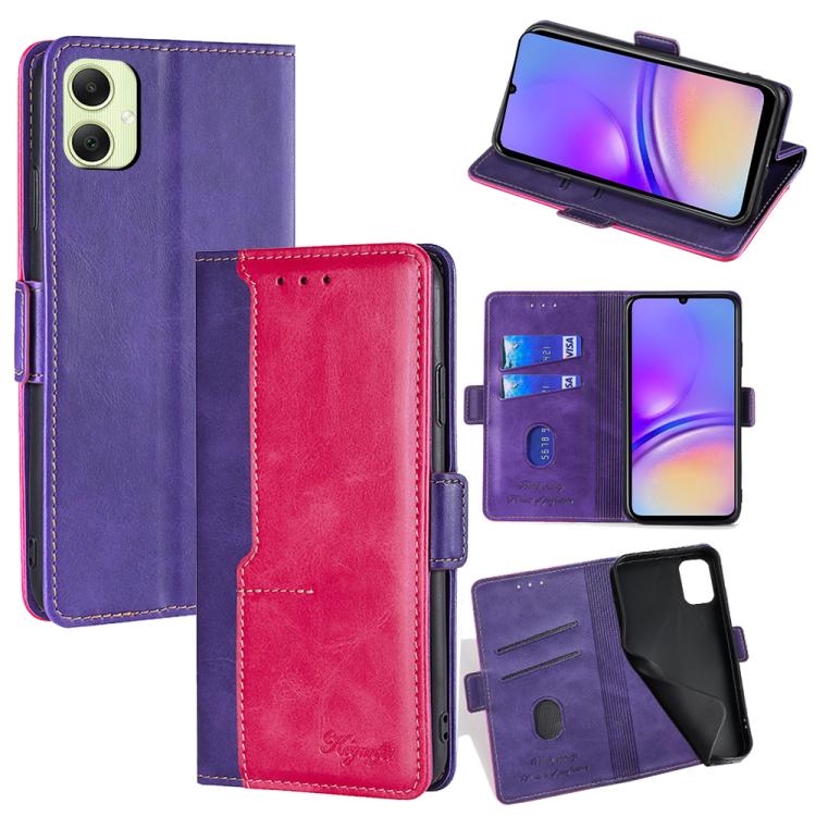 Funda de cuero con hebilla lateral en color de contraste para Samsung Galaxy A05 4G (morado y rojo rosa)