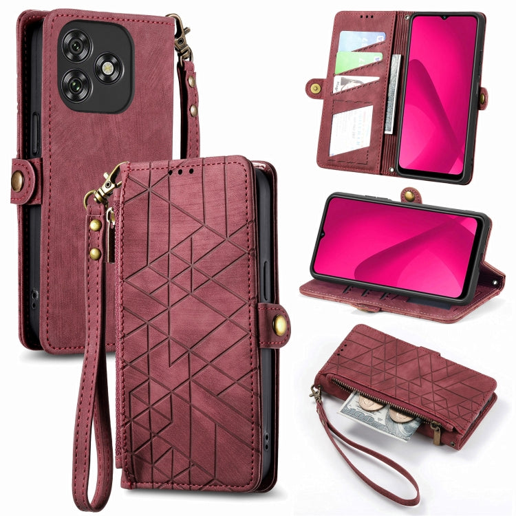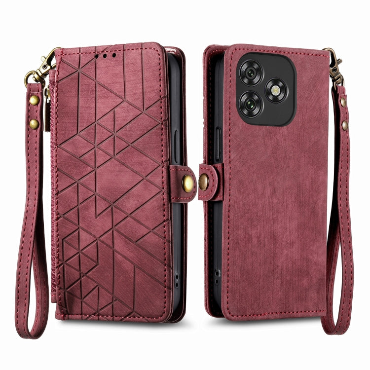 Funda de Cuero con Hebilla Lateral y Cremallera Geométrica para Oukitel C53 (Rojo)