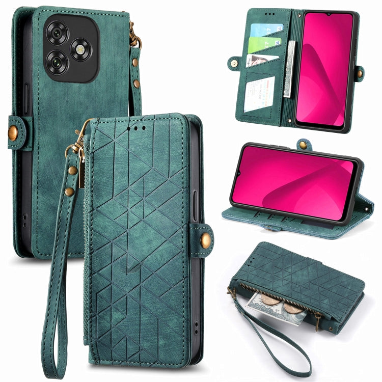 Funda de Cuero con Hebilla y Cremallera Geométrica para Oukitel C53 (Verde)