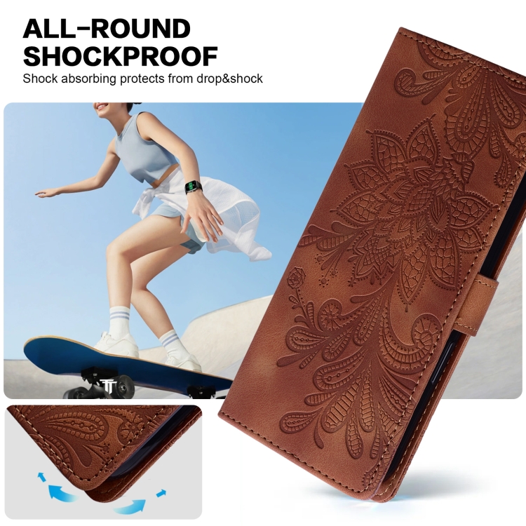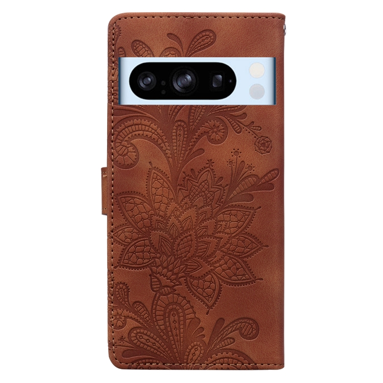 Funda de Cuero con Hebilla Magnética y Diseño Floral en Relieve para Google Pixel 8 Pro (Marrón)
