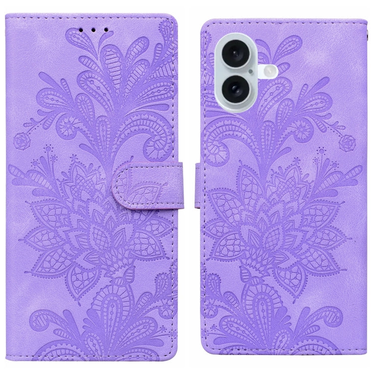Funda de Cuero con Hebilla Magnética y Diseño Floral En Relieve para iPhone 16 (Morado)