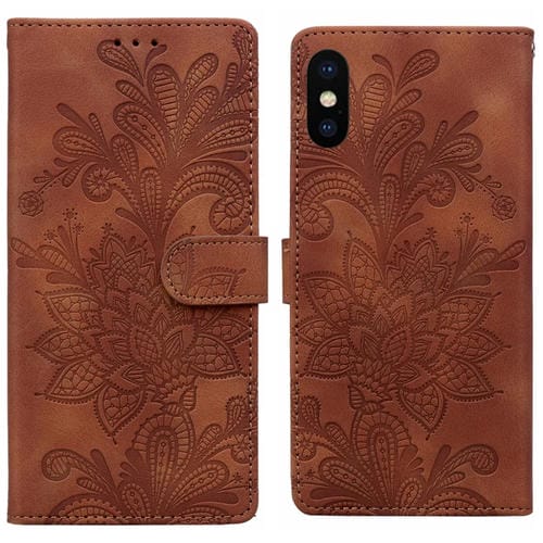 Funda de Cuero para iPhone X/Xs con Hebilla Magnética y Diseño Floral en Relieve (Marrón)