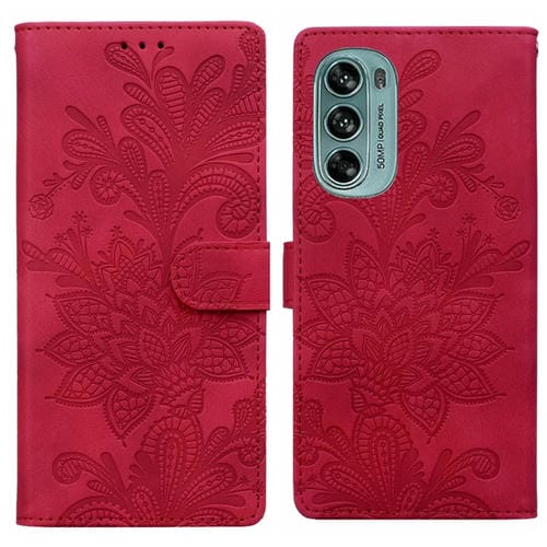 Funda de Cuero con Hebilla Magnética y Diseño Floral para Motorola Moto G62 5G (Rojo)