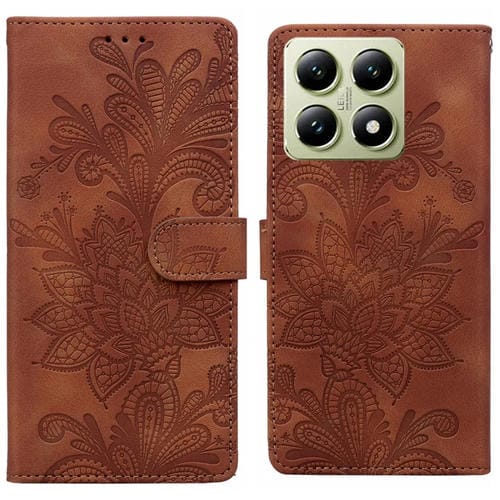 Funda De Cuero Con Hebilla Magnética Y Encaje Floral En Relieve Para Xiaomi 14T (Marrón)