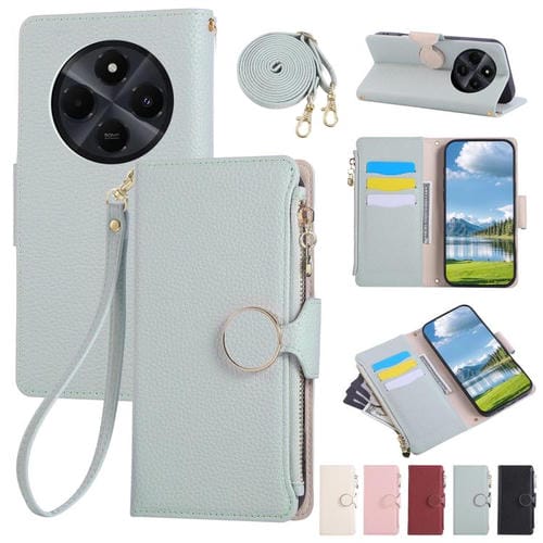 Funda de cuero con hebilla redonda y cremallera para Redmi 14C 5G, con correa cruzada (azul cielo)