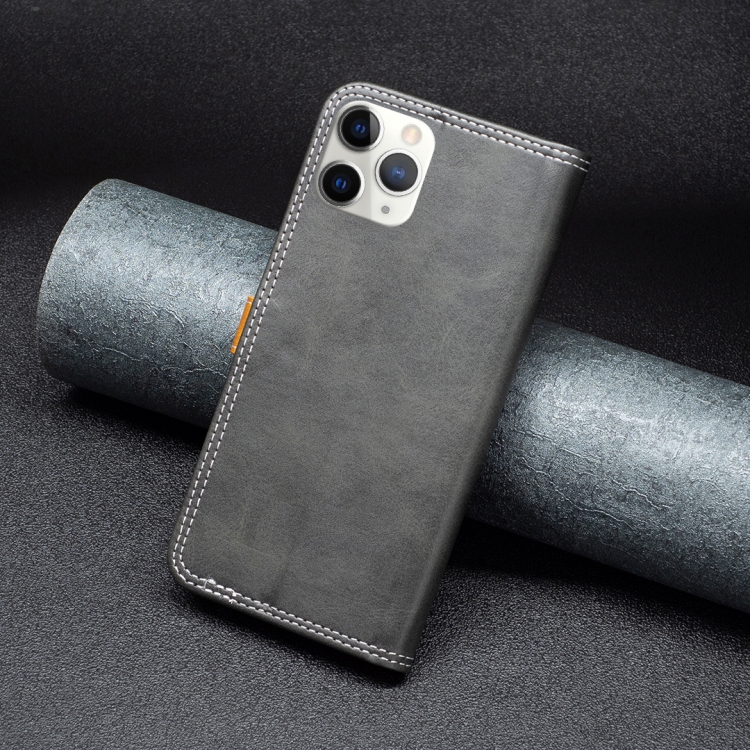 Funda de Cuero para iPhone 11 Pro Max con Hilo de Coser Doble a Juego (Negro)