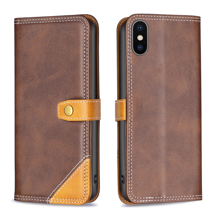 Funda de Cuero iPhone X Xs Hilo de Coser Doble a Juego (Marrón)