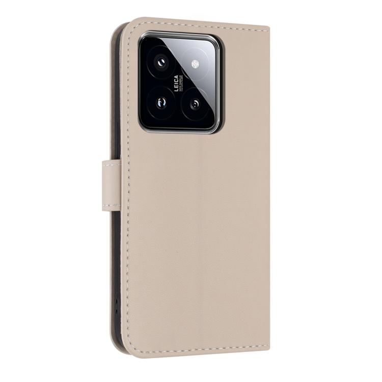 Funda de cuero con lazo metálico y correa para la mano para Xiaomi 14 Pro (albaricoque)
