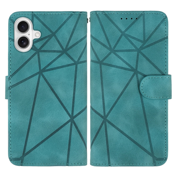 Funda de Cuero para iPhone 16 Líneas Geométricas Tacto Agradable (Verde)