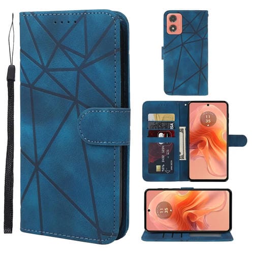 Funda de Cuero para Motorola Moto G04 con Líneas Geométricas y Tacto Suave (Azul)