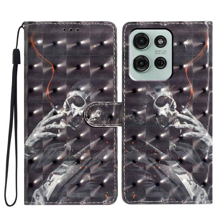 Funda de Cuero con Patrón 3D para Motorola Moto G75 5G (Calavera)