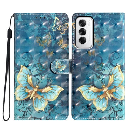 Funda de Cuero con Patrón 3D para Teléfono Oppo Reno12 Global (Mariposa 3D)