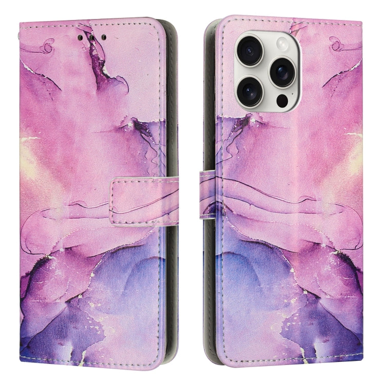 Funda de Cuero para iPhone 16 Pro con Patrón de Mármol Pintado (Morado)