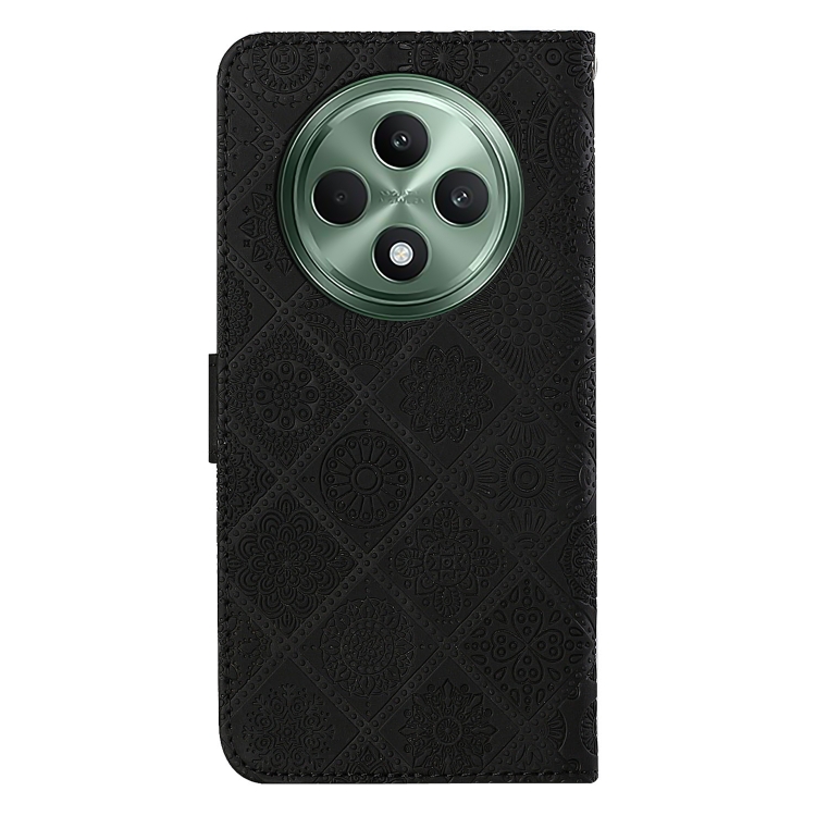 Funda de Cuero con Patrón En Relieve de Estilo Étnico Global para Oppo Reno12 F (Negro)