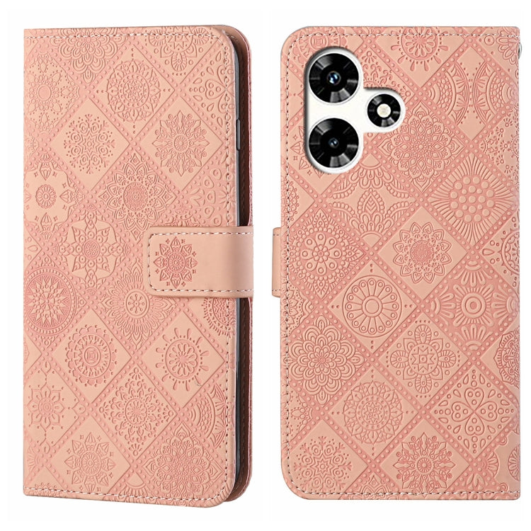 Funda de Cuero con Patrón En Relieve Estilo Étnico para Infinix Hot 30 Play Nfc (Rosa)
