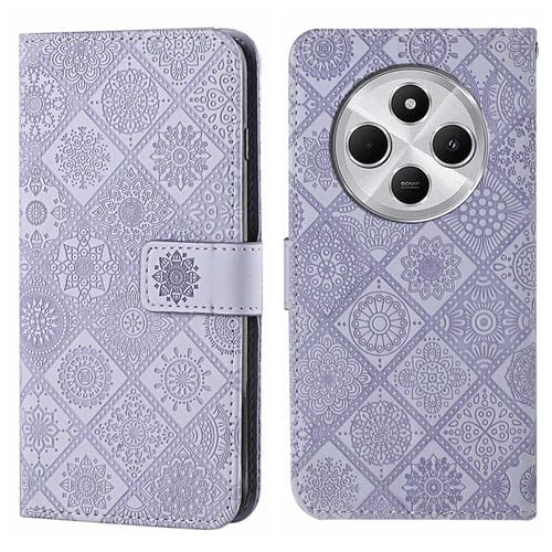 Funda de Cuero con Patrón En Relieve de Estilo Étnico para Redmi 14C 4G (Morado)