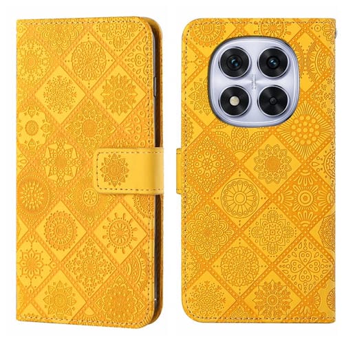Funda de Cuero con Patrón En Relieve de Estilo Étnico para Redmi Note 14 Pro 5G (Amarillo)
