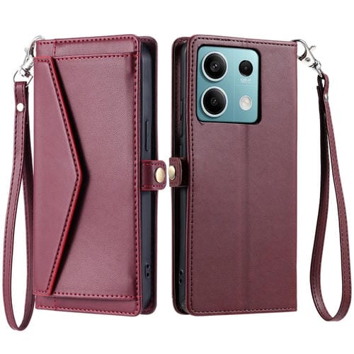 Funda de Cuero con Ranura para Múltiples Tarjetas y Billetera Global para Redmi Note 13 5G con Cordón (Rojo Vino)
