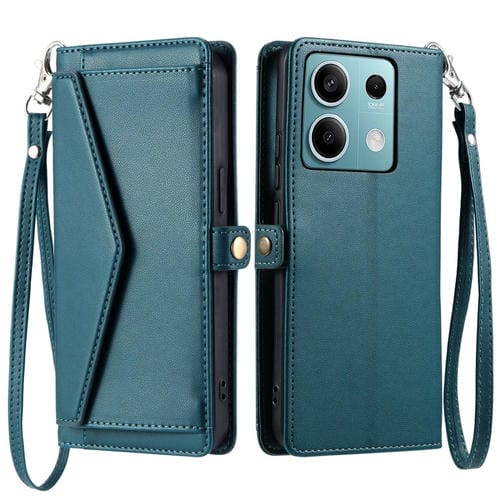 Funda de Cuero con Ranura para Múltiples Tarjetas y Cordón para Redmi Note 13 5G Global Wallet (Verde)