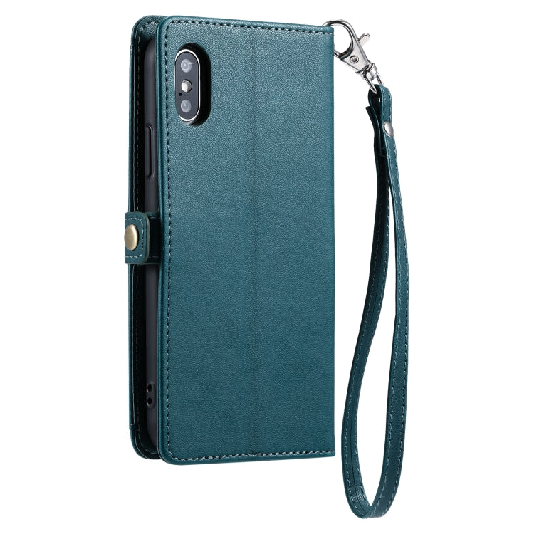 Funda de Cuero para iPhone Xs Max con Ranura para Tarjetas y Cordón (Verde)