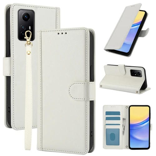 Funda de Cuero con Ranuras para Tarjetas y Tacto de Piel Global para Redmi Note 11 4G/Note 12S 4G con Cordón Doble (Blanco)