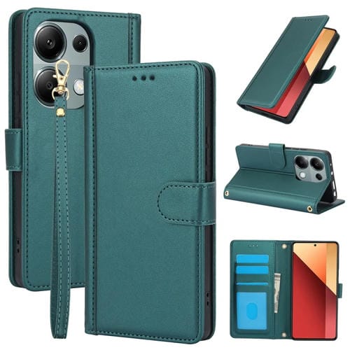 Funda de Cuero con Ranuras para Tarjetas y Tacto de Piel Global para Redmi Note 13 Pro 4G con Cordón Doble (Verde)