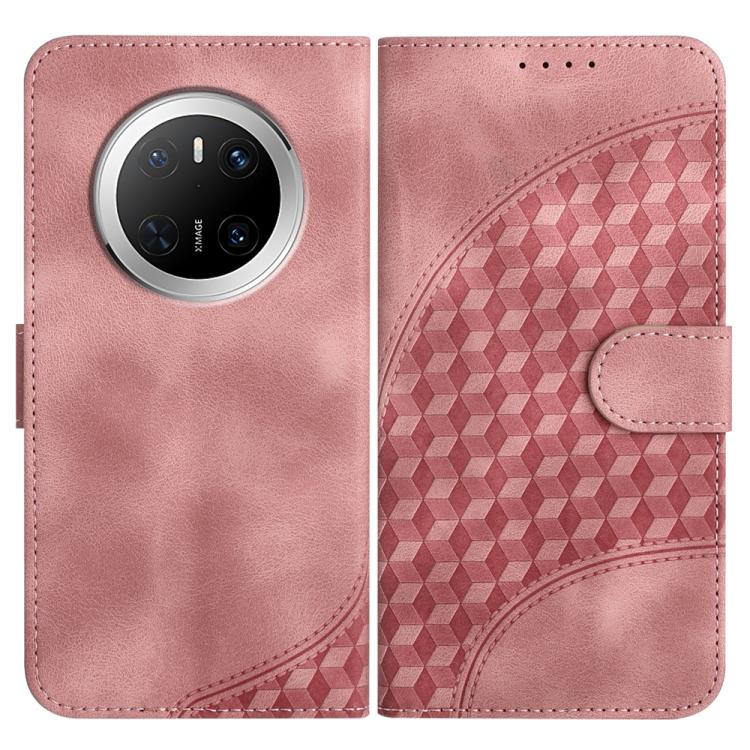 Funda de Cuero con Relieve Cabeza de Elefante para Huawei Mate 70 con Cordón (Rosa)