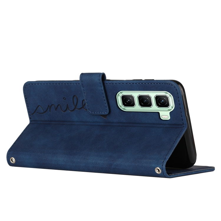 Funda de Cuero con Relieve de Corazón para Infinix Hot 50 5G (Azul)