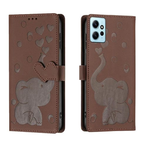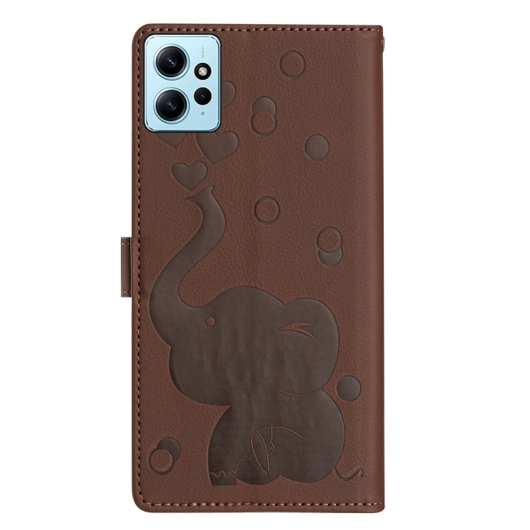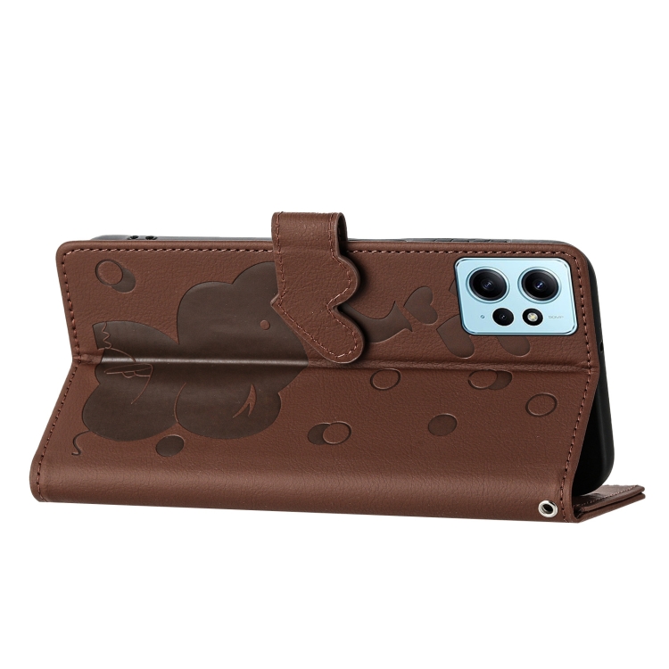 Funda de Cuero con Relieve de Elefante de Dibujos Animados para Redmi Note 12 4G (Marrón)